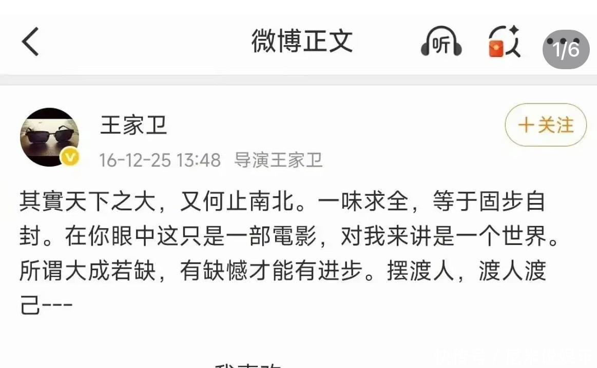 16年的时候,王家卫的电影《摆渡人》上映,圈内大多数人都碍于王家卫的影响力,即使知道这部电影很烂,依然支持王家卫。